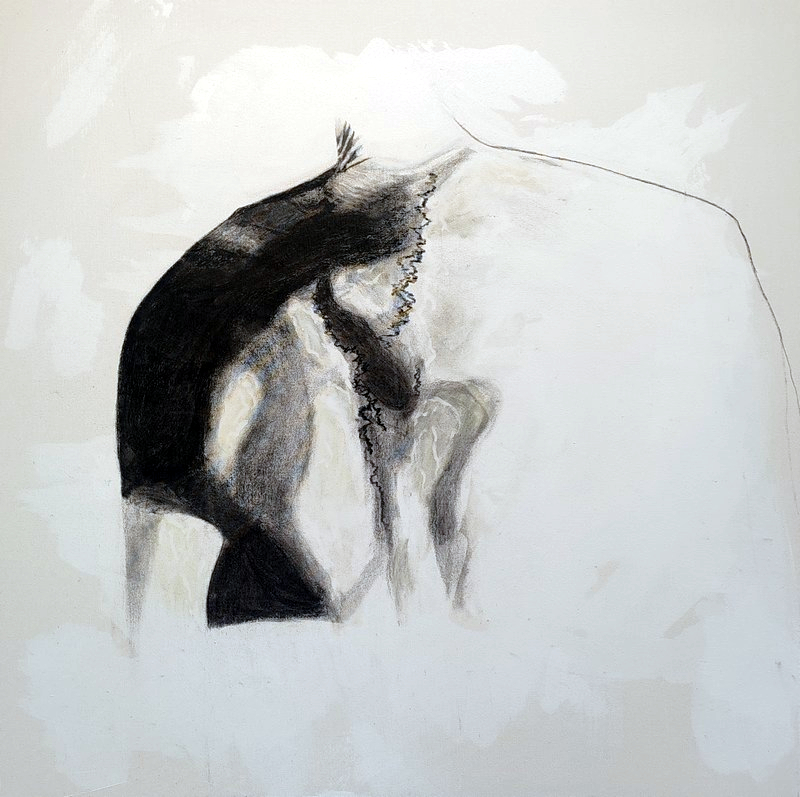 Teokseni kumpuavat omasta kehostani, sen yksityisistä kohdista, joissa tunteminen ja tunnistaminen tiivistyvät. Keho on minulle sekä lähtökohta että maisema – ei vain katsomisen kohde, vaan myös muistin ja tunteen kartta. Kehollisuus piirtyy viivaan, joka hahmottaa muotoa mutta samalla jättää tilaa epävarmuudelle ja kuvittelulle.